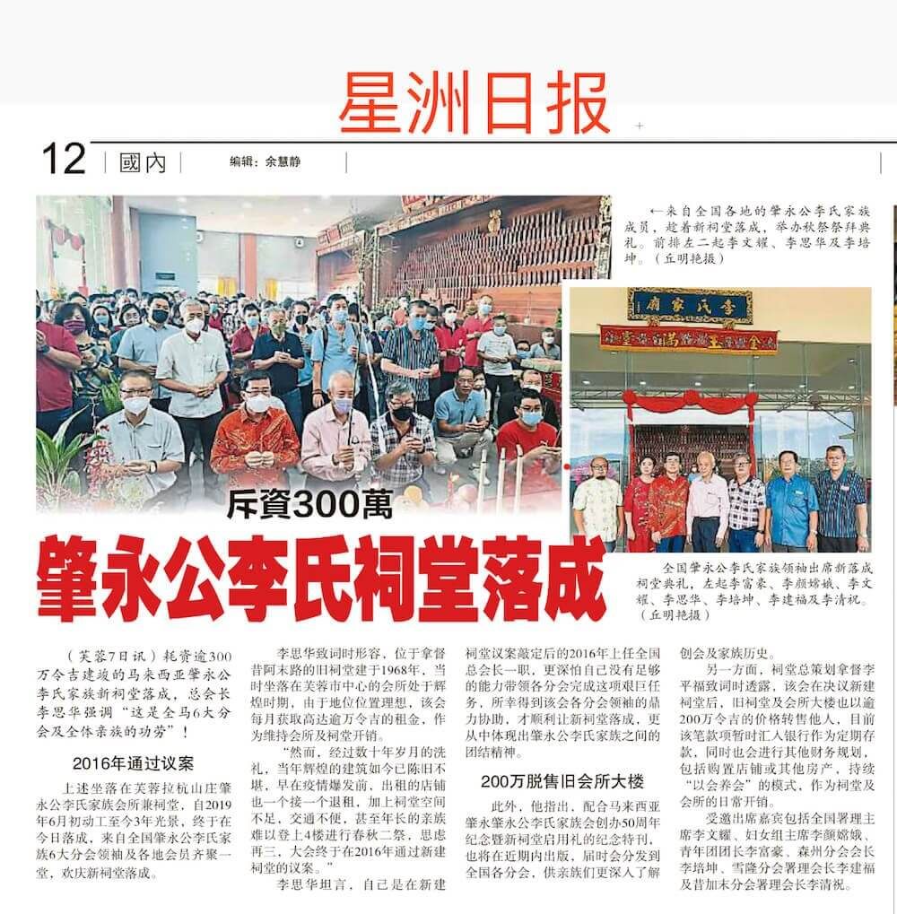 06-07/08/2022 (农历七月初九和初十) 举办本堂驻神明开光大典, 礼忏龙供进主大典及祠堂启用仪式